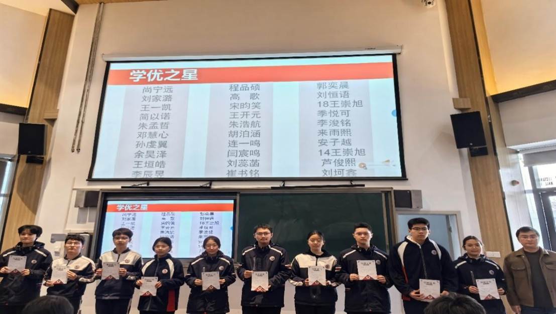 表彰环节星光闪耀,榜样力量催人奋进。经过严格遴选与综合评定,尚宁远、刘家潞等30名同学凭借优异表现荣获“学优之星”称号,季悦可、余昊泽等17名同学以扎实学风获评“学习标兵”。张伟副校长代表学校为获奖学子依次颁奖,鲜红的荣誉证书承载着对勤奋付出的肯定。台下掌声雷动、经久不息,既为获奖者喝彩,更点燃了全体尖子生比学赶超的奋斗热情。