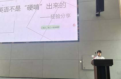 在优秀学生代表发言环节,高二(1)班李明熙同学无私分享了英语学习的创新方法。她从多元化背单词、应试技巧和语感积累三个方面,阐释了如何让英语学习从“硬啃”转变为“活用”。她强调:“学习不是机械记忆,而是在理解中生长,在实践中绽放。”