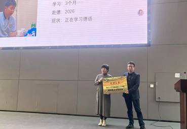 作为本次大会的重要环节,“郑州大学外国语与国际关系学院德语教学实验基地”挂牌仪式将现场气氛推向新的高潮。郑州大学外国语与国际关系学院教师向同学们详细介绍了德语社团课的具体情况。
